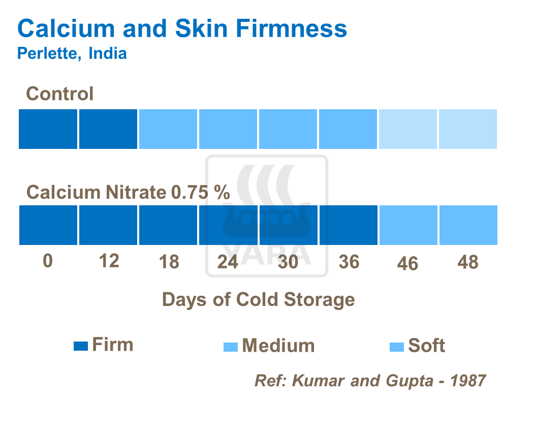 Calcium is a key component of cell walls maintaining membrane structure. It also directly influences the regulation of enzyme systems, phyto-hormone activities, and nutrient uptake. Insufficient supply of Ca limits crop growth and yield. Low calcium concentration in fruit lead to earlier maturity and softer skin.
