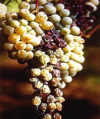 Grapes of injured stalks are not sufficiently supplied and dry out.