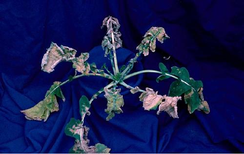 Symptoms of calcium deficiency are visible on younger leaves first. Starting from leaf tips and margins, they become pale green to grey brown. The lamina is shrivelled, ripped and shows a fluttering appearance.
